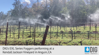 DIG’s EXL foggers are designed for cooling, and operate in an upright position above orchards or vine canopies, and in an inverted position above benches and beds inside a greenhouse. The single and four-outlet EXL foggers produce a fine mist pattern to reduce air temperature and maintain conditions conducive to cooling and propagation.